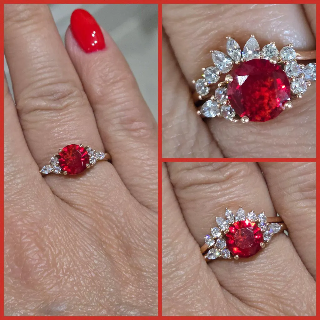 I spent ages trying to decide what style, colour stone and metal to go for (9ct rose gold with a red glass stone). I was chuffed to bits with it when I received it. It's gorgeous and can be worn with or without the stacker ring. I'm so pleased I chose the red stone as it represents my dad perfectly with his red 1940's hot rod, red Harley motorbike and his own red garnet ring he used to wear. Thank you Cumbria Life Casting for doing such an excellent job.