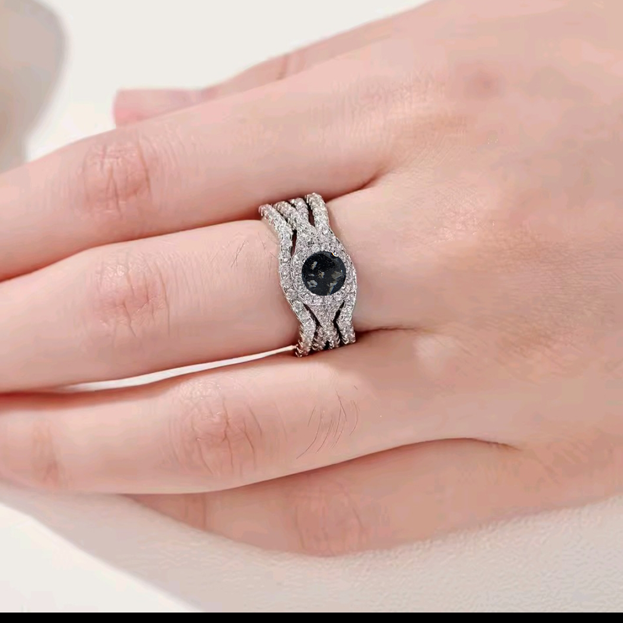 - Set Includes: Main Inclusion ring with 2x curved accent stacking bands.
