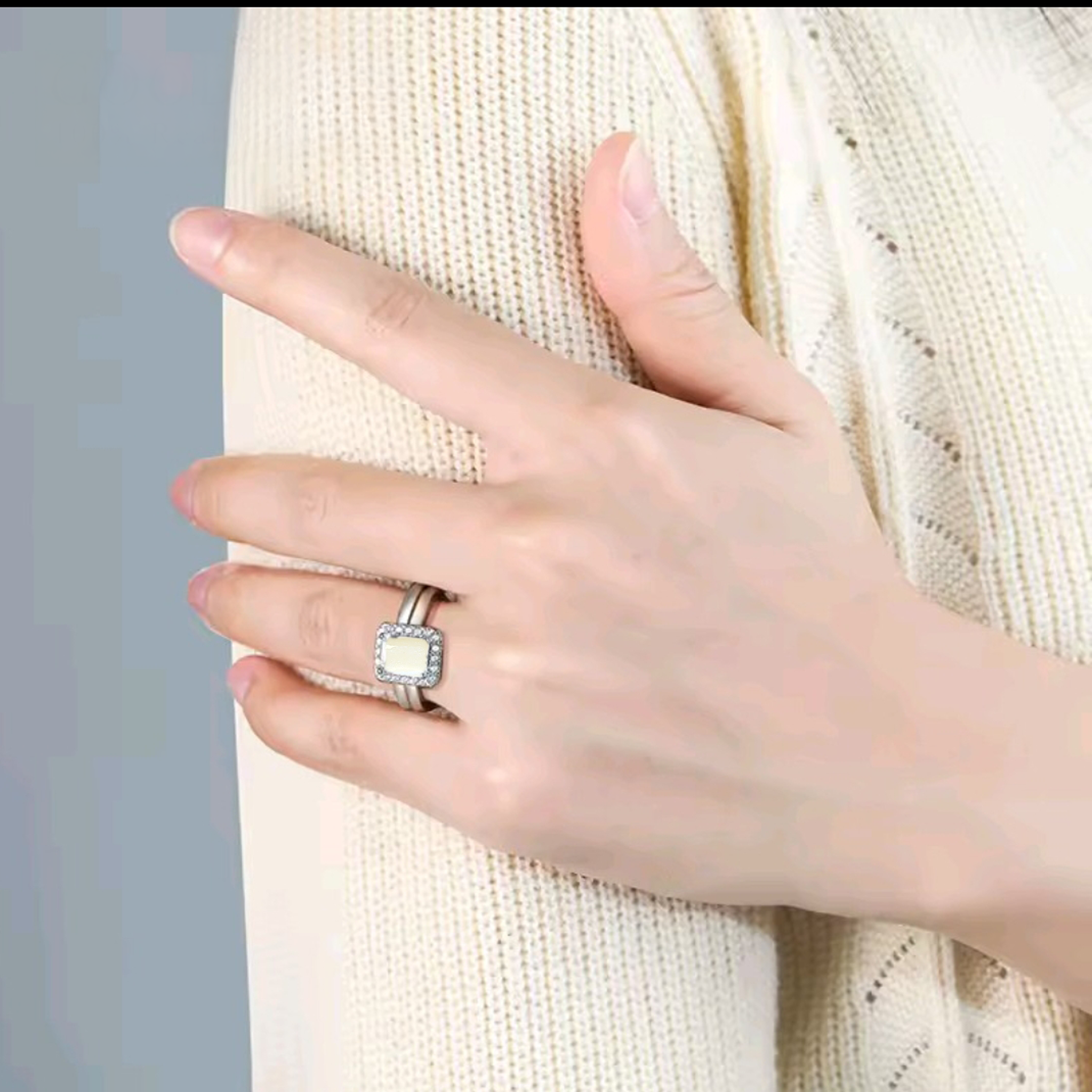 The Lumora is a radiant breastmilk ring, designed to keep your most precious memories close. Featuring a rectangular breastmilk stone framed by a halo of sparkling accents, this piece combines timeless elegance with modern craftsmanship.