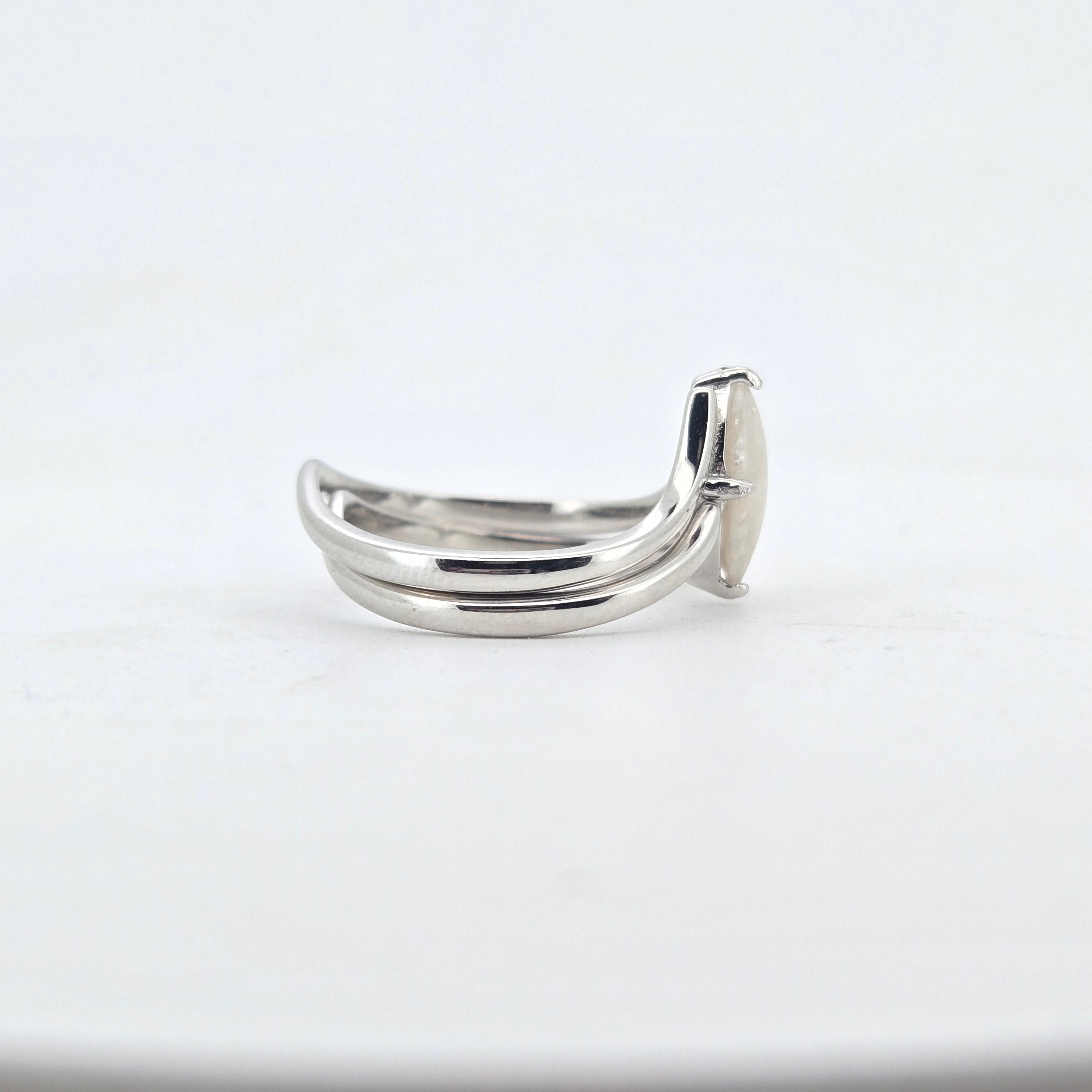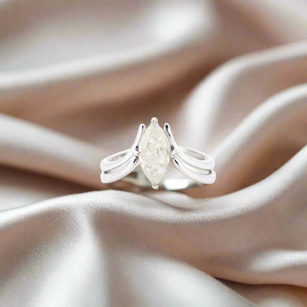 The Selene is a graceful design that balances simplicity with strength. Featuring a sleek marquise-shaped breastmilk stone set within a flowing double band, this ring is both elegant and enduring. The smooth curves of the shoulders create a gentle frame that draws the eye to your chosen inclusion, whether breastmilk, ashes, hair, or another precious element.