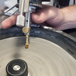 Once annealed, the glass will then be transferred to our faceting machine, where each facet it cut and polished to within 0.1mm of accuracy, giving the same finish and sparkle as a real gem stone.